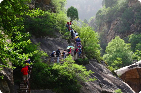 一塊塊巨石形態(tài)各異,或豎于高崖之上,令人望之膽顫,或斜依山坡呈現(xiàn)欲墜之態(tài),或伏于谷地如牛似犀;天泉之水蜿蜒谷中,輕歌細(xì)語,飛入那美麗的天池;聞濤谷山巒俊秀,古藤交錯(cuò);情人谷清幽靜雅,鳥語花香。峽谷中戲水漫游,時(shí)而峰回路轉(zhuǎn),時(shí)而曲徑通幽,更有其花異草,高山流水,仿佛讓你置身于世外桃源。正如古人所云:“重重疊疊山,高高低低樹,叮叮咚咚泉,曲曲折折路?!碧斐貚{谷三季有花,四季有景。春賞山花浪漫,夏觀飛瀑流泉,秋采果實(shí)累累,冬覓冰瀑神奇。大自然鬼斧神工,雕鑿出天池峽谷這一人間勝境。
