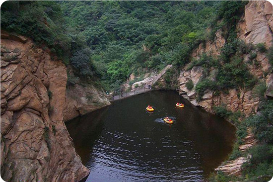 天池峽谷位于北京市懷柔區(qū)懷北鎮(zhèn)上黃土梁48號(hào),距市區(qū)76千米,是一處山清水秀,鳥語花香的風(fēng)景峽谷。峽谷以水秀、濤聲、谷幽、峰奇為特色。霞松嶺林蔭樹茂,嶺奇路險(xiǎn);聞濤谷天池溪水潺潺,四季長流。奇妙的天池紫菲,一弘秀水映百丈絕壁,令人贊嘆流連。數(shù)條溪流順?biāo)拢瑓R成1000多平方米的天池,分外清澈明凈;林聲、水聲、風(fēng)聲匯成濤聲陣陣;峽谷之幽正如“蟬噪林愈靜,鳥鳴山更幽”所描繪;神駝峰、八戒背嬌娘、福從天降、蓮藕雙生等奇峰林立。
