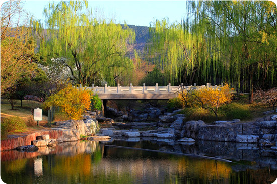 北京植物園位于西山臥佛寺附近,面積400公頃,是以收集、展示和保存植物資源為主,集科學(xué)研究、科學(xué)普及、游覽休憩、植物種質(zhì)資源保護和新優(yōu)植物開發(fā)功能為一體的綜合植物園。北京植物園由植物展覽區(qū)、科研區(qū)、名勝古跡區(qū)和自然保護區(qū)組成,園內(nèi)收集展示各類植物10000余種(含品種)150余萬株。