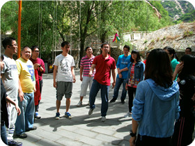 活動描述:由億方物業(yè)公司組織,天地之美戶外拓展訓練公司承辦,在北京懷柔天池峽谷展開了一天的拓展活動,在活動中我們把親近大自然的徒步穿越和時尚流行的跑男相結(jié)合,使這次拓展的變的更有意義,大家的參與度與積極性更是提高了很多。