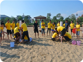 客戶名稱:鑫富匯通金融投資集團 活動時間:2015年9月 活動人數(shù):28人 活動地點及形式:河北秦皇島—海邊拓展 活動項目:搶灘登陸 扎筏求渡 羅馬炮架 撕名牌 活動描述:由鑫富匯通金融投資集團組織,天地之美戶外拓展訓(xùn)練公司承辦,在河北秦皇島展開了一天的海邊拓展活動,在活動中我們已經(jīng)沒有了組別界限、沒有了男女界限,已經(jīng)不是一個個獨立的人,而是由許多個人組成的一個堅不可摧的團隊,真真切切體會到了“團隊可以創(chuàng)造奇跡” |