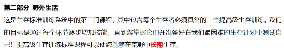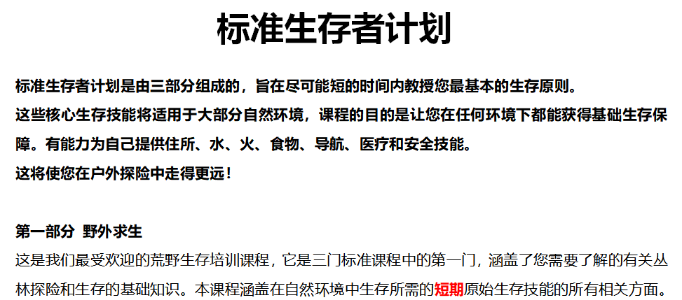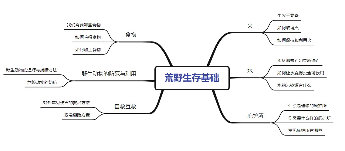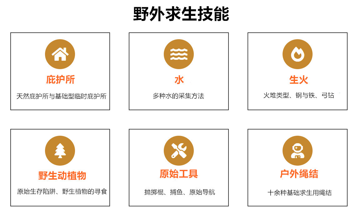 另 針對戶外運(yùn)動(dòng)專業(yè)大專院校 我們推出了若干求生類理論課程,課程分為基礎(chǔ)性的以下六大類: